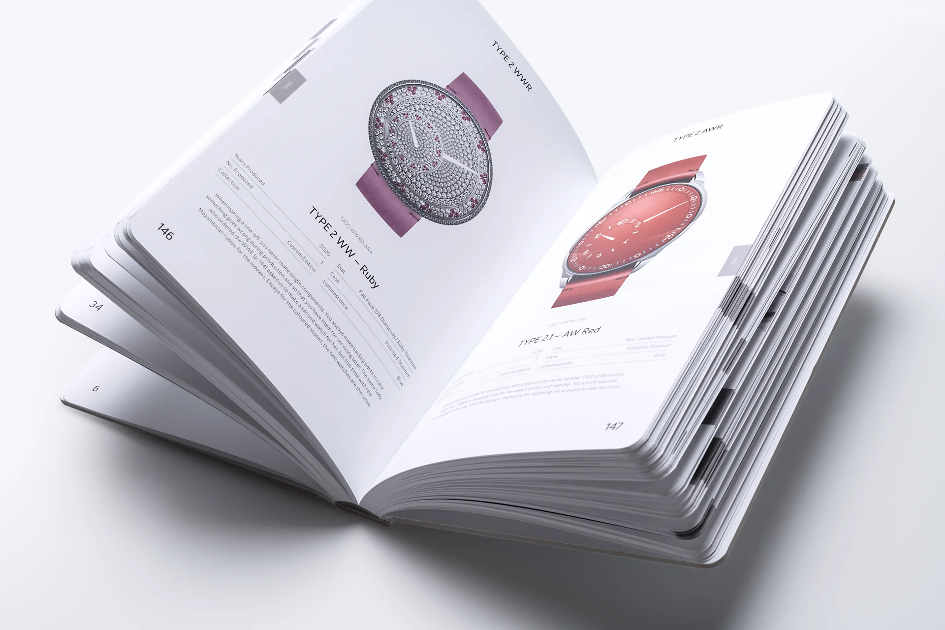This white soft-cover volume features every watch made to date, from the core collection to limited editions and unique pieces. It includes a picture of each watch, all technical specifications, production information, and a reference table.