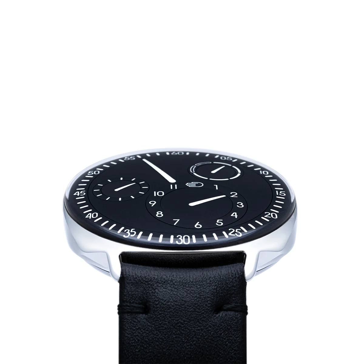 - Convex German silver dial (125mm radius) with 3 eccentric biaxial satellites inclined at 3° (hours) and 4.75° (seconds and day of the week)