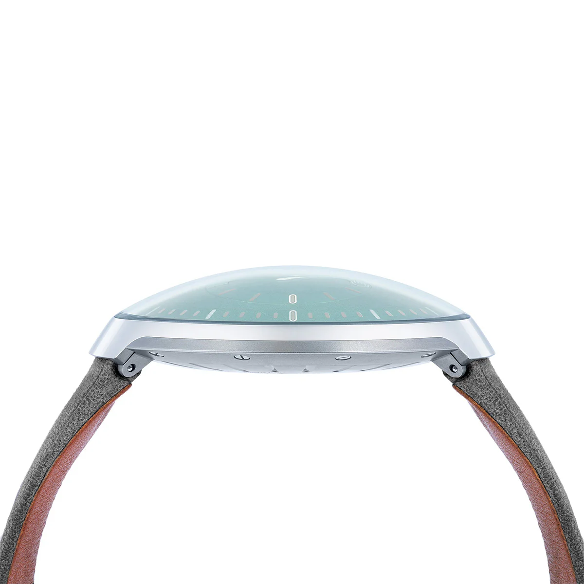 - Matt Metallic Sage Green grade 5 Titanium convex dial (75mm radius) running on a jewel ball bearing with eccentric satellites rolling on jewel ball-bearings inclined at 9,75° (hours)