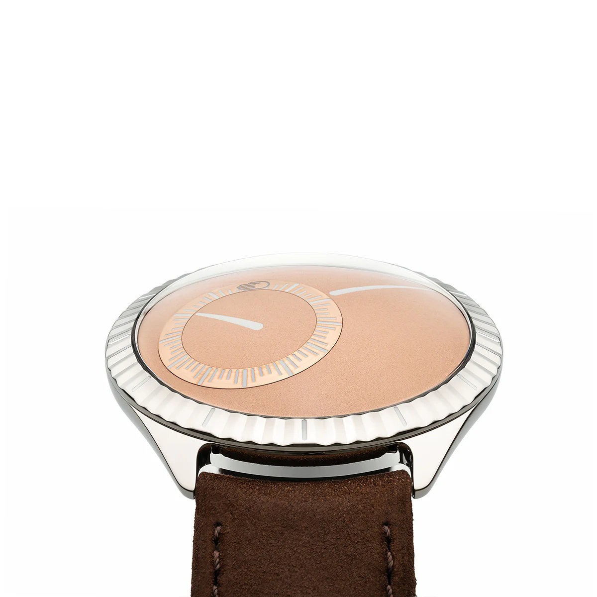 - Patented ROCS 9 - Ressence Orbital Convex System - driven by the minute axle of a customised and reinforced 2892/2 base calibre